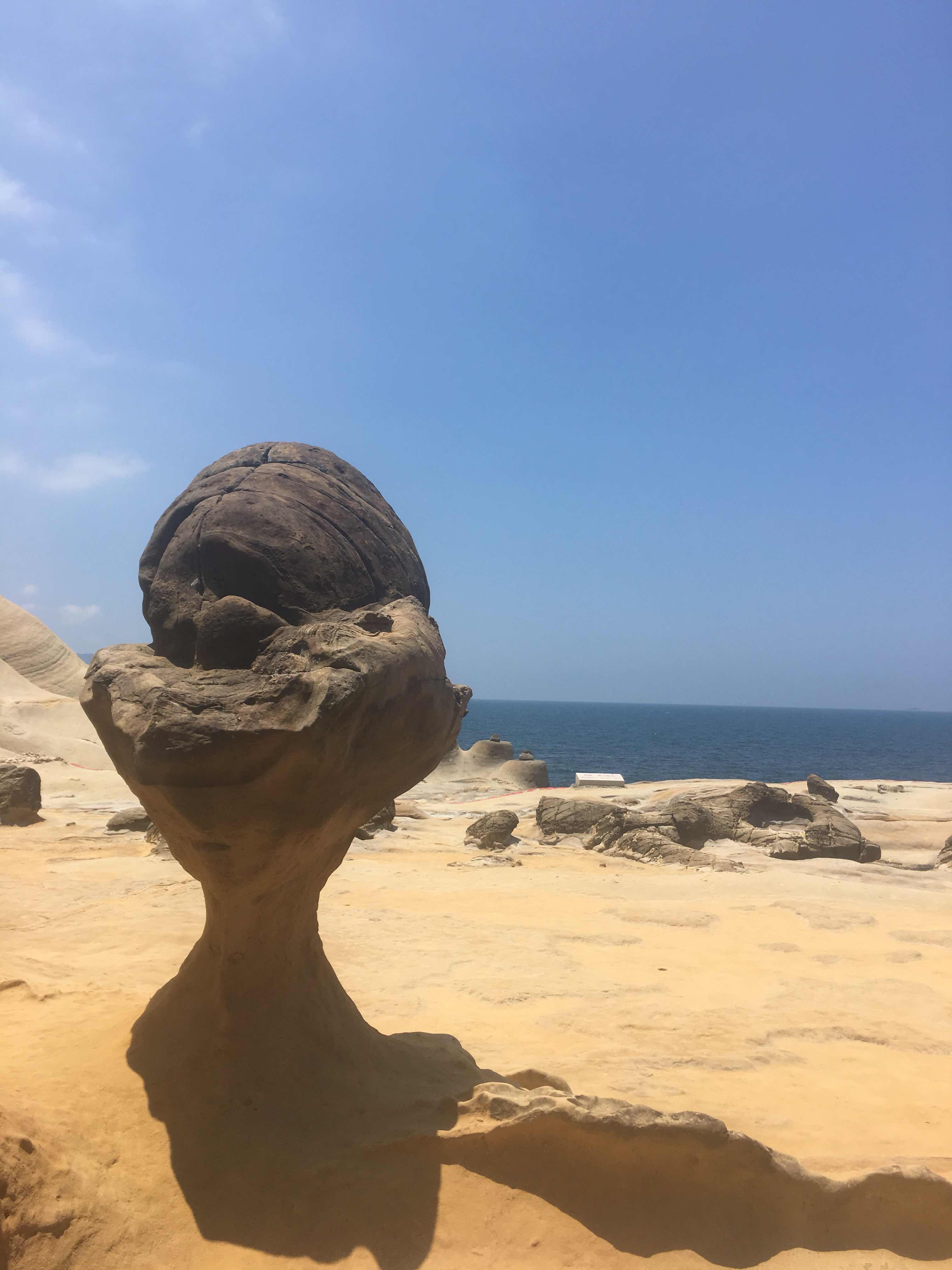 The view at Yehliu Geopark is truly breathtaking. The water appears very clean, but due to the large waves, swimming is prohibited. Even as you walk around, you will notice red lines and signs indicating areas that should not be crossed. Violators of these rules will be fined. The sunshine was extremely strong during my visit, and with the temperature reaching 37 degrees, my skin turned red. By the way, the stone formations only reveal their true beauty when viewed from the proper angle.